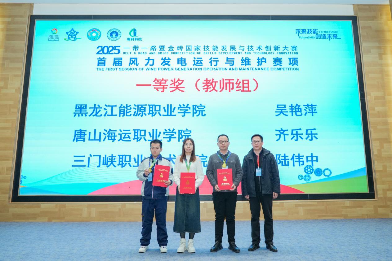 2025年10月23日至26日,2025一带一路暨金砖国家技能发展与技术创新大赛之首届风力发电运行与维护赛项决赛在唐山海运职业学院成功举办。智能制造学院师生代表队凭借扎实的专业功底和出色的现场表现,从来自全国的40余支参赛队伍中脱颖而出,共斩获1金、4银、1铜的优异成绩。彰显了学院在新能源领域人才培养的显著成效,更展现了"以赛促教、以赛促学"育人理念的丰硕成果。